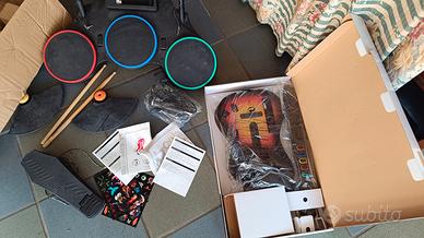Vendo bundle Guitar Hero world tour per wii Batteria usata, chitarra nuova mai usata Non so se funziona ancora, non garantisco. Gioco non incluso, non lo trovo piu