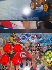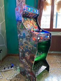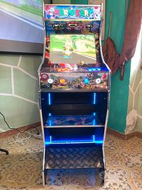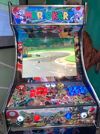 Bartop Cabinato Arcade con possibilità di giocare a più di 15000 giochi Stile Mario Kart - Schermo 21 pollici 4/3 -Vetro antiriflesso 3 mm davanti lo schermo -Grafiche in pvc - Protezione plexiglass su tutto il cabinato ,non solo sui tasti per proteggere i disegni per sempre con pellicola protettiva da togliere - Strisce cromate con protezione antigraffio - Luci LED con telecomando rgb sia per la scritta sia sulla base - Joystick con pulsanti LED e pulsanti laterali per giocare con più di 500 flipper - All 'interno un PC con scheda grafica dedicata ed avere la possibilita di giocare a giochi recenti - 2 TB SSD - Tastierino wireless e 1 telecomando per i LED - 2 ventole LED per raffreddamento - Presa corrente con fusibile per qualsiasi sbalzo di corrente - Casse integrate con regolatore di volume - Sono 2 pezzi entra benissimo in auto - Frontend Hyperspin Per qualsiasi prova o altre informazioni per favore contattare su whatsapp Le misure sono 60 cm x 60 cm per 160cm h Roma Sud 3287349119 Luca Prodotto fatto artigianalmente