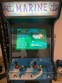Vendo bellissimo cabinato da collezione in perfette condizioni con ancora monitor a tubo catodico originale, gettoniera funzionante, e vetrofania marine originale retroilluminata.