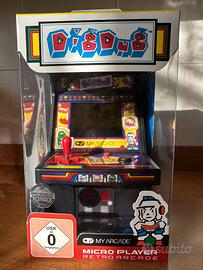Mini cabinato originale MyArcade MicroPlayer con licenza ufficiale Dig Dug. Il mini cabinato include il solo videogioco Dig Dug con licenza ufficiale ed è la versione con schermo LCD da 2.75 pollici, joystick svitabile, jack audio e alimentazione doppia a micro usb 5V o con pile stilo. Il prodotto viene venduto causa inutilizzo, in condizioni pari al nuovo, con l'imballo originale, le istruzioni per l'uso e le batterie stilo già inserite. Disponibile a fornire ulteriori informazioni o foto. Prezzo 20€ (venduto in rete tra i 35 e i 60 euro circa) VIENE DATA PRIORITA' AL RITIRO A MANO PRESSO CORNAREDO (MI)