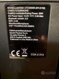 Vendo sistema karaoke Canta Tu modello 2022 (CTC06000), usato pochissimo e conservato maniacalmente. Il dispositivo è completo di tutto l'equipaggiamento originale, ideale anche come regalo. Caratteristiche principali: * Condizioni: Pari al nuovo, senza graffi o segni d'usura. * Schermo: Ampio display touch da 14" perfettamente funzionante. * Sistema: Android integrato con Wi-Fi per YouTube, Spotify e App. * Accessori: Inclusi 2 microfoni wireless originali (frequenze VHF 179.00/202.00MHz) e alimentatore. * Extra: Presente la scatola originale con tutti gli imballaggi interni protettivi. La batteria è in ottime condizioni e tiene perfettamente la carica. Disponibile per qualsiasi prova o visione di persona. 📍 Crotone - Preferito lo scambio a mano