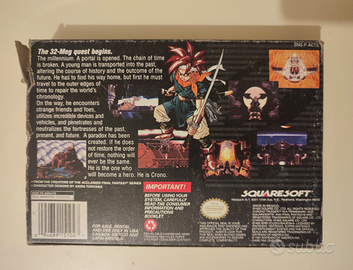Vendo Chrono Trigger NTSC comprensivo di manuale e box. Titolo storico, considerato da molti come il miglior rpg di tutti i tempi. Il box è discrete condizioni. Cartuccia perfetta e manuale di istruzioni incluso in buone condizioni. Prezzo 470 euro Astenersi perditempo, sono propenso allo scambio a mano su Milano e bassa bergamasca. Disponibile alla spedizione. Zelda, super Nintendo , sega , final fantasy , secret of mana,