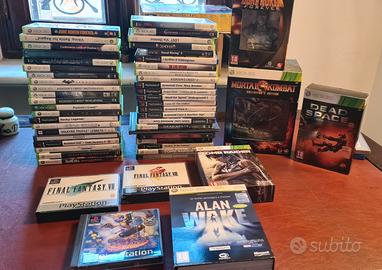 Vendo titoli originali per PlayStation 1, 2, 3, PSP e Xbox 360, tutti in buone condizioni, molti con custodia e manuali originali.