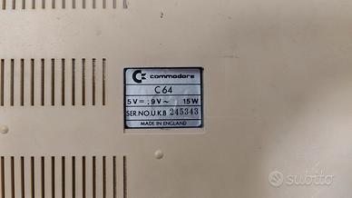 Commodore 64 breadbin + alimentatore, made in U.K. Si accende la spia ma non ho modo di provare l'effettivo funzionamento. Imballaggio originale rovinato. Console in buono stato estetico.