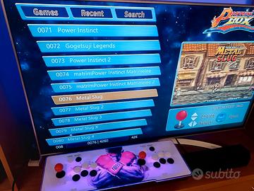 vendo sistema pronto all'uso sala giochi anni 80/90 come nuovo , completo di alimentazione e cavo HDMI , uso per due giocatori , joystick arcade a 6 pulsanti , retroilluminata RGB rainbow , ready to play , la collegate alla TV o monitor e giocate da subito , zero impostazioni , molto semplice ed immediata