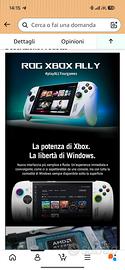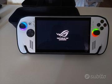 vendo bellissima console ultimo modello acquistata a dicembre quindi ha solo quattro mesi ed stata usata pochissimo vendo per inutilizzo può essere usata anche come PC perché ha il sistema operativo Windows accessoriata di protezione in silicone e custodia più caricabatterie che nn era compreso,sotto la descrizione di Amazon Funzionalità e dettagli ROG stupisce con la nuova Console per il Gaming ROG ALLY: compatta, potente e leggera per offrire la migliore esperienza di gioco in mobilità Grazie al sistema operativo Windows 11 Home è possibile avere accesso a tutte le maggiori piattaforme di gioco e alla propria libreria gaming online, inoltre questa console può essere utilizzata come un PC portatile a tutti gli effetti Design ergonomico e progettato per migliorare la dissipazione del calore. Perfetto per chi cerca tutta l'esperienza, la potenza e l'estetica dei prodotti ROG in un device innovativo e all'avanguardia, unico nel suo genere, che ti permette di avere accesso a tutte le tue piattaforme gaming preferite e al contempo connetterti in streaming o ai tuoi canali social