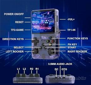 Console di gioco R36S open source è dotata di due joystick 3D e di un D-pad a forma di croce per un controllo preciso. Come un potente dispositivo simulatore portatile grande come il Game Boy.