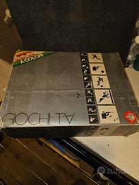 Funzionante, due joystick con controller con rotellina, cavo alimentazione e cavo antenna per il collegamento al TV.