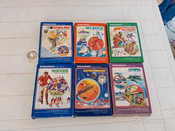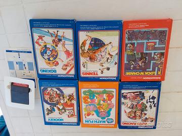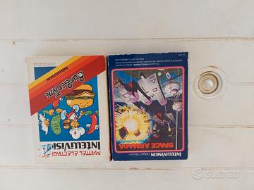 Console MATTEL INTELLIVISION originale, più cassette, in ottimo stato di conservazione, come da foto, il tutto con custodie originali e istruzioni. Preferibilmente, da prendere il blocco intero (console più cassette). Il costo di ogni singola cassetta, comunque, è di € 25, 00, ad eccezione di SPACE ARMADA (il vecchio Space Invaders) e di BURGERTIME, giochi ammiragli dell'INTELLIVISION, che hanno un costo di € 75,00 cadauno. La console da sola (più comandi e cavi di collegamento, ha un valore di € 300,00.