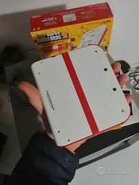 Vendo console Nintendo 2ds edizione speciale con all'interno precariato il gioco di New Super Mario Bros 2, in ottime condizioni perfettamente funzionante, solo qualche graffietto sullo schermo superiore come si vede in foto, da acceso non si vede nulla, per il resto è perfetta, di questo modello se ne trovano in giro distrutti e con schermi completamente rigati...questo è messo molto bene, completa di scatola (senza però il cartoncino interno e imballaggi vari), alimentatore originale, 6 card per la realtà aumentata, manualetto di istruzioni e due giochi: Lego city undercover e Miitopia