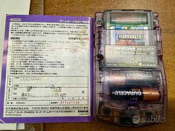 Console portatile Nintendo Game Boy Color trasparente versione giapponese (è region free e funziona qualsiasi tipo di cartuccia anche europea) completo di scatola, manuale, flyer.