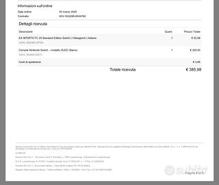 Vendo Console Nintendo Switch - modello OLED, Bianco +FC25 in ottimissime condizioni , usata poco, con garanzia ancora attiva e fattura gioco+console. Scadenza garanzia 3 marzo 2027. Completa di tutto. Prezzo 270€ trattabili.