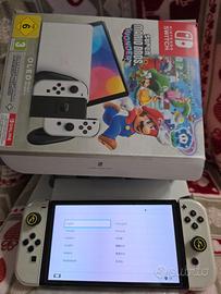 Console Nintendo Switch OLED con scatola originale e tutto il kit interno (cavi, dock, joy-con grip) mai usato.