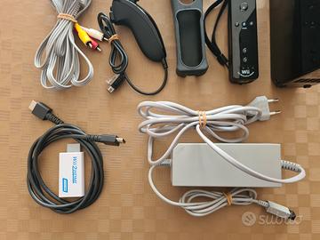 vendo console NINTENDO wii Nera , ottime condizioni , un controller con motion plus incluso e un nunchuk originali ,completa di balance board come nuova , in aggiunta cavo hdmi con adattatore TV, compresi 285 giochi tra cui diversi just dance -mario kart-fifa 14/15 - need for speed- Call of Duty: Black Ops-mario e giochi olimpici-mario tennis-mario party-Trivial Pursuit -wii play-wii sport resort -grand slam- wii motion plus- top spin - virtual tenkns- -mario party 8/9-need for speed carbon/prostreet/undercover -Super mario galaxy -tetris party-motoGP-Shaun white Snowboarding-zumba 1/2 -new super mario bros e tanti altri. Ottimo regalo per i vostri bambini .consegna SOLO a mano per provarla con calma. Prezzo non trattabile quindi astenersi con offerte di vario genere perché verranno cestinate.