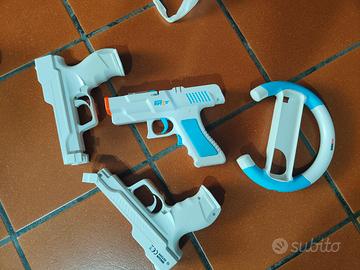 Console Wii + 3 joystick (di cui 1 remote) + 2 nunchack + Balance Board + Tappeto + Accessori vari (pistole, volante, ecc) + 12 giochi (New Super Mario Bros Wii, Wii Sport Resort, È il mio compleanno, Wii Fit plus, The Legend of Zelda: Twilight Princess, Rayman Raving Rabbits: Party Collection, Cocoto, Family Trainer, Let's Tap, Mario Power Tennis, Link's Crossbow Training, Wii Sports)