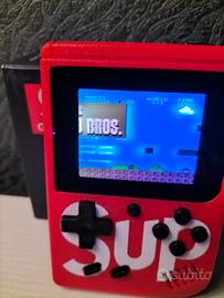 Videogioco portatile con 400 giochi preinstallati. Completo di foglio istruzione, cavetto USB per la ricarica, batteria, cavo per collegamento TV.