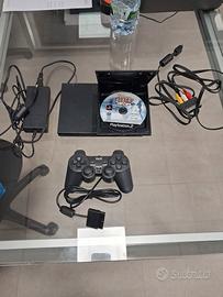 playstation 2 funzionante e completa di un joystick e cavi di alimentazione e con un gioco