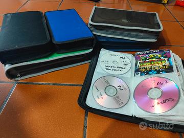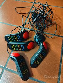 PS2 fat con software + 2 Memory Card 8mb + joysticks wireless e con filo + telecamera + Buzz! + chitarra + tappetino + volante e pedali + microfono + accessori vari (pistole) + 4 giochi originali (Buzz! Music Quiz, Peperino Operazione Papero, Singstar Italian Party, EyeToy Play) + 7 raccoglitori pieni di CD con giochi