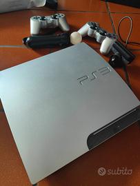PS3 fat 320 GB + 2 joystick + controller move + telecamera per move + 11 giochi (Uncharted 2 e 3, The Last of Us, Need for Speed Most Wanted, GTA V, Ratchet and Clank: Tutti per uno, inFamous 2, Heavy Rain: Move Edition, Crysis 2, DanceStar Party, James Cameron's Avatar) + confezione e cavetti originali