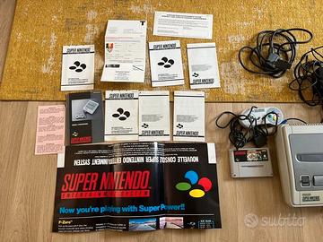 Console Super Nintendo d’origine. Vendue avec manette + câbles + boîte, notices, posters + jeu « super Mario All Stars » Le bouton rouge s’allume, mais je ne peux tester sur écran faute de prise Péritel sur celui-ci. Parfait pour retrogaming ou collection.