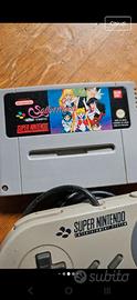 Console Vintage super Nintendo anni 90. Funzionante, con tutti i cavi e 4 cassette gioco: SuperMario, Super Tennis, Súper soccer e SailorMoon.
