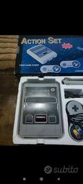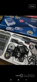 Con cavi, due joystick. Include moltissimi giochi simil super Nintendo. L'adattatore purtroppo mi è caduto durante la prova ma è funzionante, nessun problema. La pistola è stata testata e non funziona.