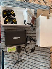 Come da titolo vendo console vintage videogiochi marca Genius GIOCA&IMPARA praticamente mai usata e completa di cartuccia giochi, mouse, due joypad, pistola, cavo collegamento antenna tv e manuale.