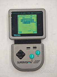 Console Vintage Watara Supervision in ottime condizioni, funzionante (sia il video che l'audio) con scatola, polistirolo, cuffie e foglio di istruzioni + 2 giochi, Cryst Ball e Olimpic Trials, entrambi con istruzioni.