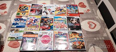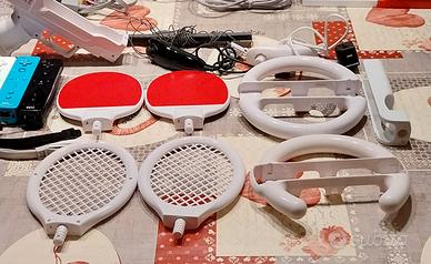 wii tenuta perfettamente!! completa di cavetti ,3 joystick 4 racchette tennis ping pong,2 volanti e pistola.con 15 giochi originali!!