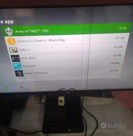 Console Microsoft XBOX 360 S 3P HDD 250 GB (STINGRAY) Modello 1538 - Nera con circa 19 giochi digitali installati (quelli in giallo non sono funzionanti, son circa 3 o 4) + 2 videogiochi fisici in condizioni accettabili (piccole rotture) + 2 in regalo + 1 controller joypad originale microsoft wireless + altri accessori video