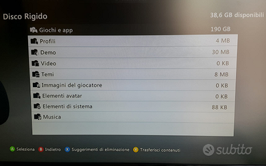 In vendita lotto console Xbox 360 Slim (corona) con giochi: caratteristiche hardware: - Mod. RGH3 (vedere foto 2-3 per le saldature sulla scheda madre) - Pulizia completa console, pasta termica sostituita - Pulizia completa lettore DVD, con cambio cinghia / elastico di espulsione tray, lubrificazione del motorino + pulizia laser / lente. - Alimentatore originale - HDD 250GB originale, controllato al PC per settori danneggiati - 6 giochi originali (foto n1) - CD di ripristino (foto n1) - Controller originale OEM completamente ricondizionato (analogici NUOVI, vedere foto 4) - Sensore Kinect caratteristiche software: - 190GB di giochi digitali pre-installati (foto n6, per una lista scrivetemi), accessibili dalla dashboard originale senza necessità di utilizzare Freestyle3 / Aurora. - Target temperatura modificato da 82C originali a 68/65C, per avere una console più "fresca" e duratura. - XBLGhost pre-installato, che consente le seguenti operazioni: - Accedere ad Xbox Live con RGH in modo "sicuro" - Scaricare molti contenuti dallo store gratis (foto n5) - Giocare online ai titoli CoD senza necessità di avere il Gold / gamepass - Ripristino GTA 5 Online grazie al progetto GTA 1.27 (foto n1) Inoltre sono presenti vari applicativi homebrew nell HDD, tra cui anche Freestyle3 se volete usare una dashboard diversa da quella Microsoft (non consigliato per il gioco online), XexMenu, XM360 per copiare giochi XBLA, ecc.. Il CD di ripristino (foto 1) contiene il backup del NAND (retail + RGH3), backup impostazioni Dashlaunch e XexMenu, utilizzabile in caso vogliate partire con una console formattata. Posso anche includere un cavo per flashare la NAND (utile in caso di hard brick della console) per 5€. Spedisco in tutta italia tramite servizio TuttoSubito, oppure ritiro a mano di persona della console con i giochi.