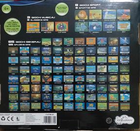 Consolle per videogiochi vintage "My game system" perfettamente funzionante e perfettamente conservata nella sua confezione originale. La consolle funziona sia con l'adattatore in dotazione o in alternativa con 4 pile AAA da 1,5 v. Invece i due JoyPad funzionano con 3 pile AAA.