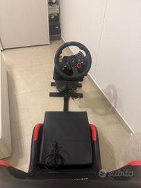 vendo postazione gaming con sedile, volante e pedaliera Logitech 29, Ps4, 2 joystick, 2 giochi (F1 2020, Motogp 2020), il tutto praticamente nuovo, usato pochissime volte.