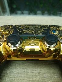 Controller Joystick Originale Playstation 5 personalizzato in tema Dragon con set di pulsanti e mascherina gold. Parte posteriore con inserti in gomma per una perfetta Impugnatura antiscivolo e provvisto di Exstremerate Rise Remap.