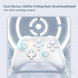 Ecco un elenco ordinato delle caratteristiche e funzionalità del controller - Frequenza di risposta di 1000Hz sia in modalità cablata che wireless, per prestazioni ultra-reattive nei giochi competitivi - Base di ricarica dedicata con funzionalità di ricarica rapida e porta USB integrata per maggiore stabilità - Joystick e grilletti con tecnologia Hall per un controllo fluido, preciso e sensibile alla pressione - Batteria integrata da 1000mAh che garantisce lunghe sessioni di gioco senza interruzioni - Pulsanti posteriori programmabili fino a 32 azioni per un'esperienza completamente personalizzabile - Funzione di vibrazione a 4 livelli con motori asimmetrici per un feedback realistico e coinvolgente - Compatibile con PC, Nintendo Switch, iOS e Android - Illuminazione RGB integrata per un tocco estetico moderno e personalizzabile