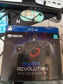 Controller nacon Revolution pro 2 in buone condizioni compreso di scatola originale e cavo per ricaricarlo nella scatola sono presenti dei stickers e una sacchetto richiudibile per metterci dentro il controller il controller ha un difetto che si trova nelle levetta R2 che ogni tanto rimane premuto