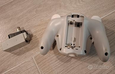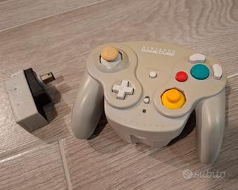 vendo controller Wavebird senza fili per Nintendo gamecube con relativo ricevitore, perfettamente funzionante, leggermente ingiallito sulla parte anteriore come da foto e con sportellino del vano batterie mancante.