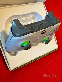 Controller Wireless Xbox colorazione Grigio/Verde Usato ma funzionante, vendo perché non ho più la console. Levetta analogico sinistra leggermente usurata come si vede in foto ma perfettamente funzionante Completo di confezione originale e manuali Spedizione immediata