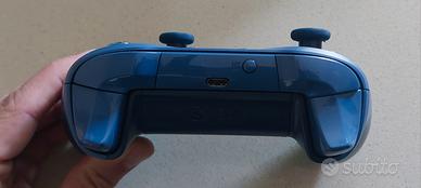 controller usato ma perfettamente funzionante, pulito con cura e sia la scocca che i contatti interni. non presenta problemi di drift ne altro. aggiornato firmware tramite pc. testato con cavo e batteria. presenta minuscoli segni di utilizzo praticamente invisibili con scatola come da foto