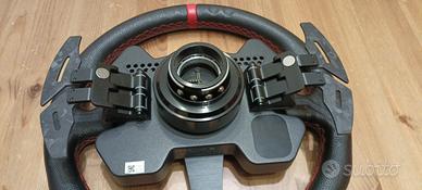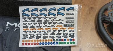 Volante completo di corona e pulsantiera con scatole originali e kit adesivi e spessori per regolazione distanza palette. Sempre conservato nella sua fodera dopo l'uso, è letteralmente immacolato oltre che perfettamente funzionante. La corona è stata sostituita con quella in foto, meno imbottita ed estremamente più resistente all'usura, utilizzabile sia con che senza guanti ha un grip formidabile.