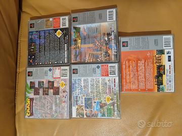 Lotto di crash bandicoot per Playstation e Psone composto dai 5 capitoli usciti per la console Sony , sono tutti completi di manuali e copertine anteriore e posteriore tutti ORIGINALI, i capitoli sono ; crash bandicoot crash bandicoot 2 cortex strikes back crash bandicoot 3 warped crash bash crash bandicoot Ctr : crash team racing . I dischi sono in buono stato come le custodie , ma una mostra un problemino visite nella foto è quella di crash bash . Prezzo poco trattabile