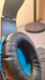 Cuffie da gaming beexcellent con cavo perfettamente funzionanti, con regolatore del volume tramite rotellina, i LED posti sul lato esterno dei padiglioni funzionano come da foto, il cavo presenta dei difetti estetici visibili nella fotografia, il padiglione destro presenta un difetto anch'esso visibile in foto, tutti i componenti delle cuffie funzionano regolarmente, incluso il microfono regolabile.
