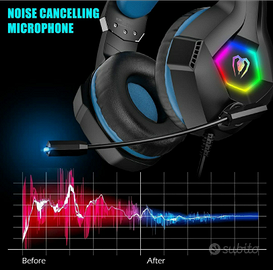 Microfono per la cancellazione del rumore: il microfono per cuffie da gioco utilizza la più recente tecnologia di cancellazione del rumore per rimuovere il rumore e trasmettere una comunicazione di alta qualità. Il microfono può essere girato di 120° e ruotato di 360° e registra i rumori ad alta sensibilità, consentendo di inviare o ricevere messaggi chiari durante un gioco senza ritardi.