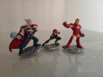 Gioco originale, con base per personaggi, 3 statuette Marvel: Iron man, Thor, Black Widow; Play Set “Torre degli Avengers” - Prezzo trattabile