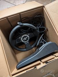 Volante Logitech Driving Force Pro, funzionante l'ultima volta che è stato usato. Funziona su PC scaricando il software Logitech Profilerà dal sito ufficiale, su win 10/11 gira in modalità compatibile perché non supportato ufficialmente. Disponibile a chiarimenti o domande