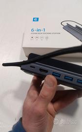 ?100 W PD?-- La docking station USB-C di questo hub può collegare un adattatore di alimentazione con una potenza in uscita fino a 100 W, consentendo al laptop di essere caricato ad alta velocità durante l'utilizzo di tutte le altre funzioni dell'hub. Assicurati che la porta USB-C del tuo dispositivo supporti la funzione di ricarica.