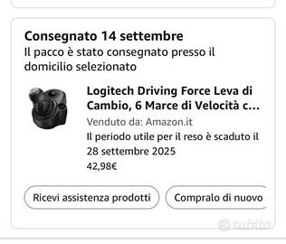 Vendesi driving force Logitech completo di supporto e cambio (shifter) comprato a metà settembre ma non adatto all’età del ragazzo.