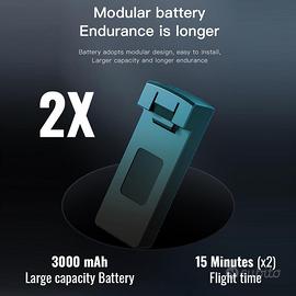 Specifiche: Dimensioni: aperto 26 x 26 x 6,5 cm, chiuso 8,5 x 14 x 6,5 cm Peso: 158 g con batteria (126 g senza batteria) Autonomia di volo con 2 batterie: circa 30 minuti