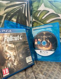 Vendo *Elden Ring per PS5* (disco perfettamente funzionante, *senza custodia originale*) e *Fallout 4 per PS4* (completo di custodia e disco in ottime condizioni).