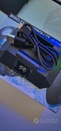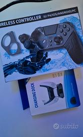 Vendo Controller EVIVA PAD Q300 Wireless/Bluetooth 5.0 per PS4/5 Slim/Pro/Elite, e PC. Batteria ricaricabile tramite USB (cavo annesso), 4x tasti programmabili, moduli intercambiabili lato destro/sinistro tramite apposita chiavetta situata nella parte posteriore del controller. LED light, doppia vibrazione, touch control panel, ecc. Insieme al controller cedo anche una "Dock Station", accessorio per la ricarica del dispositivo con uscita Type-C, e LED di notifica per verificarne lo stato di carica/scarica. Questo accessorio volendo è anche compatibile per ricaricare i joystick della playstation. Solo per realmente interessati, no perditempo. Entrambi gli articoli sono pari al "NUOVO", e sono stati aperti solo per testarne il corretto funzionamento, successivamente sono stati riposti immediatamente all'interno della scatola (originale) che verrà fornita al momento dell'acquisto.